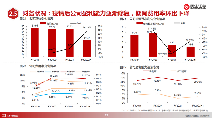 疫情爆发两年以来,名创优品MINISO的收入受到了一定的影响,但是仅仅只是增长放缓,增速仍然高于生活家居行业大盘。目前的名创优品MINISO已累计进入全球100个国家和地区,且共计开出了5045家名创优品MINISO门店,市场规模不断扩大。而且根据第三方机构弗若斯特沙立文的行业报告数据来看,名创优品MINISO的国内市场份额逆势增加了0.5%,现在已经是全球排名第一的生活家居自有品牌综合零售商。截止到2022财年上半年,名创优品MINISO的公司净利润已经达到近4亿,而且从数据报告中也能够客观地看到净利润率已经恢复至7.3%的水平。