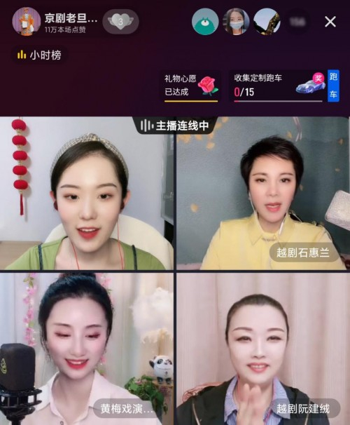 在直播间里,很多年轻戏曲演员崭露头角,为人所知。邢文文认识了很多同行,比如大连京剧院花脸任思媛、“95后”京剧演员郭雨昂。此外,同为“00后”的上戏“416”女团用京腔演绎国风歌曲,在抖音走红,让网友们感受到了京剧魅力。
