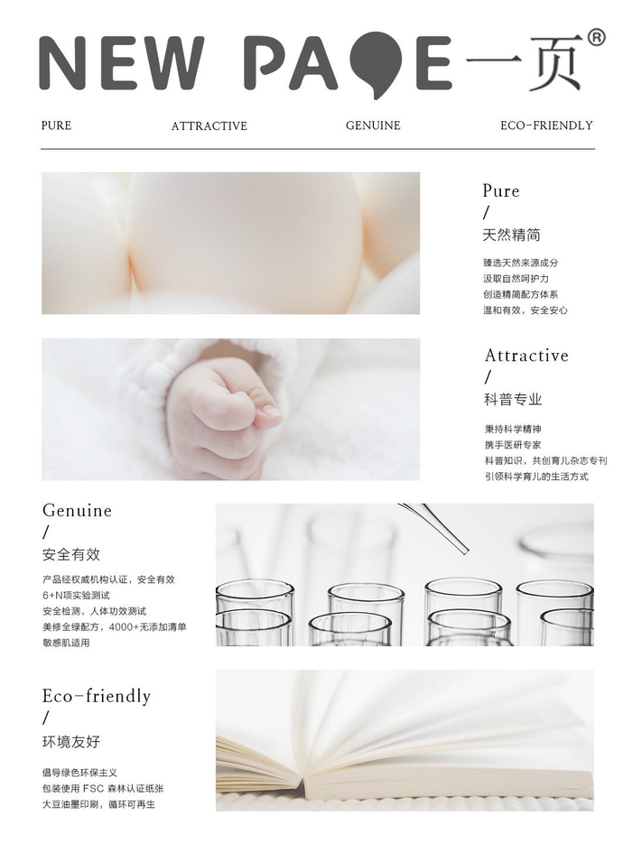 近期,上美集团旗下备受期待的中国婴童功效护肤品牌newpage一页重磅上市。newpage 一页由儿科专家崔玉涛和科学家黄虎联合创立,专注宝宝敏感肌。首创“医研共创”模式,打通用户需求、临床经验、科研技术。秉持“PAGE”品牌理念:天然精简(Pure)、科普专业(Attractive)、安全有效(Genuine)、环境友好(Eco—friendly)。