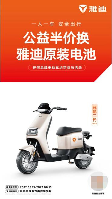 一人一车,安全出行,公益半价换雅迪原装电池活动获好评如潮