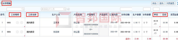 功能价值:智邦国际ERP系统32.04版本,新增联动式计件工资,计件工资添加时,一键选择待计件工序汇报单,自动带出相匹配的工价;在“工价编码”列更改工价后,工价编码、单价、单位自动匹配和更新,同步联动计算数量和总价,计件工资自动化,制单更快、更准、更省心。