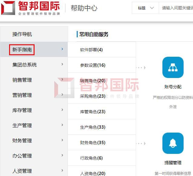 功能价值:智邦国际ERP系统32.04版本,新增各角色新手指南,无论系统管理员,还是销售、采购、库管、生产、财务、行政到人资等角色,点点鼠标,从软件部署到参数设置,从常用功能、业务流程到基础操作等,图文指导即在眼前,全员快速上手,企业高效协作无忧!