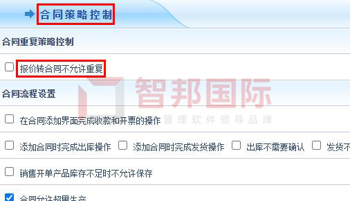 功能价值:智邦国际ERP系统32.04版本,新增报价转合同判重,一键选择“报价转合同不允许重复”策略,当报价产品总量小于合同产品总量时,自动控制不允许转合同,全程自动核算、比对、判重、控制,轻松解决一次报价多次下单管理难题。