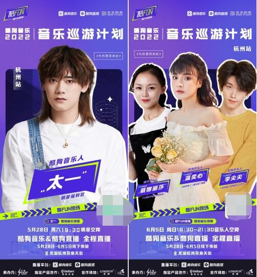 据介绍,本次“音乐巡游”将在5月28日始发,首站落地杭州。届时,酷狗将邀请“音乐全才”太一,以及温奕心、萌娜丽莎、李尖尖等酷狗音乐人登台,他们将带来各自的经典代表作,献上全开麦Live秀!此外,活动还会在酷狗直播全程同步,“线上+线下”同频狂欢,联动屏幕前的乐迷们,一起畅享这场音乐派对。