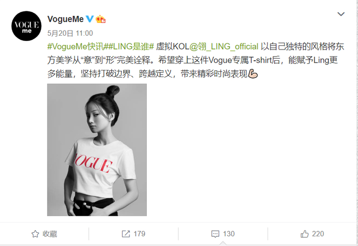 她身穿VOGUE专属T-shirt诠释时尚,通过特斯拉汽车感受古风和新时代科技的碰撞,在奈雪的茶体验“Ling“类茶研室…更重要的是,翎受邀参加中央广播电视总台首档国⻛少年节目《上线吧!华彩少年》,带来《天女散花》初舞台,成为首个登上央视综艺的虚拟人并持续霸屏热搜。