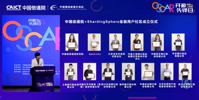 中国信通院持续跟踪重点领域开源项目,协助进行项目上下游合作伙伴的互通,搭建开源项目行业交流平台,持续推动开源项目在行业中的落地。本次,为解决金融用户在开源项目使用中的痛点问题,中国信通院联合Apache ShardingSphere开源项目共同成立金融用户社区,为社区成员提供技术支持、安全保障、用户调动、业务赋能等全方位服务。社区首批成员13家,分别是中国信息通信研究院、北京思斐软件技术有限公司、农业银行、民生银行、工商银行软件开发中心、赣州银行、江苏农信、上海银行、平安银行、中国太平洋保险、众安在线财产保险、四川天府银行、武汉众邦银行。
