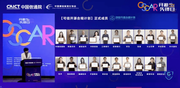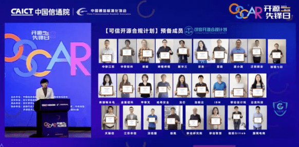 2022年5月20日,2022 OSCAR开源先锋日顺利举办。此次大会由中国信息通信研究院、中国通信标准化协会主办,云计算标准和开源推进委员会提供支持,云计算开源产业联盟承办,金融行业开源技术应用社区、通信行业开源社区、科技制造开源社区、可信开源社区共同体等共同协办。大会发布了2022年上半年可信开源评估结果和多项研究成果,并成立汽车行业开源社区、可信开源合规计划(TWOS-C)、中国信通院—ShardingSphere金融用户社区等三大开源产业组织。