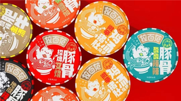 小面馆的整体空间包装采用极具记忆点的红白配色,同时还有萌态可掬的招财猫咪“范喵喵”为亮点,一改传统速食食品行业的视觉套路,打造高颜值的产品新视觉,向消费者传递年轻化、时尚化、高端化的品牌气质。
