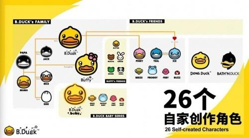 目前,除了“当家花旦”B.Duck小黄鸭之外,公司旗下共拥有26个原创角色,包括B.Duck Baby、Buffy、Bath’N Duck和Dong Duck等IP分别在母婴、女性及潮牌服饰领域布局,以更贴近消费者需求的IP形象拓宽多线发展。