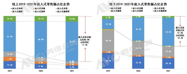 奥维云网数据显示,2021年嵌入式复合机整体规模95万台、56亿元,零售量同比增长22%,零售额同比增长26%。同比2019年零售量增长98%,零售额同比增长104%。其中,嵌入式蒸烤占比逐年提升,2021年已超75%。