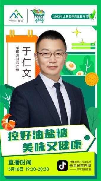 中国注册营养师于仁文老师5月16日为我们带来《控好油盐糖 美味又健康》。于仁文老师在直播中解答了既想少油少盐少糖,又想尽享菜肴美味,怎样做才能兼顾美食与健康这一难题。