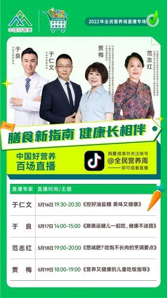 没有赶上直播的观众也不用着急,可以在抖音搜索关注“全民营养周”的官方账号,可以收看这四期直播视频回放。健康中国,营养先行,2022我们一起“会烹会选 会看标签”。