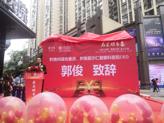 我院CEO郭俊详细介绍了黔南爱尔仁爱眼科医院的发展历程,并致词表示,今天的新院开业将成为医院历史上又一个里程碑。下阶段,全院干部员工将一起坚守追求社会责任和自身发展和谐统一,并坚持以人为本,牢记为民、便民理念,逐步实现“使所有人,无论贫穷富贵都享有眼健康的权利”的使命,尽全力为黔南州地区的眼疾患者提供优质的服务,为黔南州的眼科医疗卫生事业的发展做出积极有效的贡献。