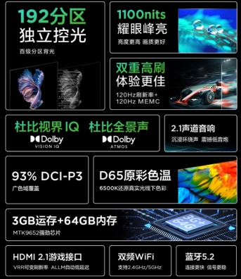 作为FFALCON雷鸟2022年备受瞩目的85寸巨幕电视,新品鹤5Plus依旧保持了鹤系产品一贯的「唯美」特性。全屏192个棋盘式分区背光,屏幕峰值亮度更是高达1100nits,“像素级”的精准控光效果以及“千位级”的清晰亮度效果,造就了雷鸟85寸大屏电视的极致画质体验。
