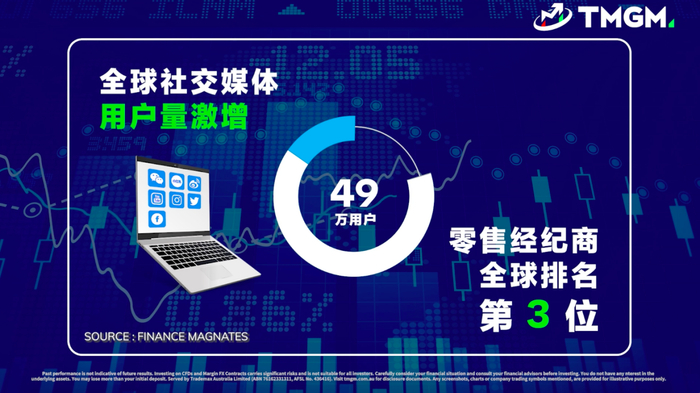 TMGM各大社交媒体平台用户数激增,本季度总共吸引了全球超过49万用户的关注和订阅,社交媒体的积极表现在全球零售经纪商中高居第3位,TMGM品牌影响力持续增长!