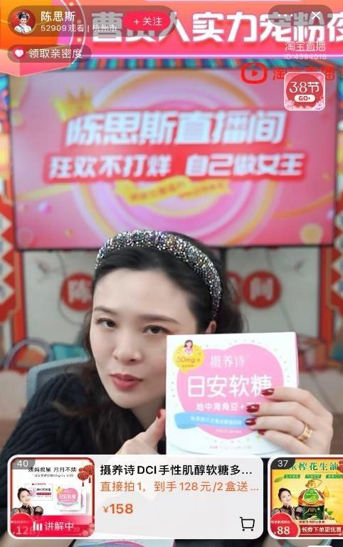 摄养诗的产品外观选用女性喜欢的粉色和紫色“爱心”的形象出现在大众眼前。目前平台在淘宝、天猫、抖音开设旗舰店,尤其在天猫平台,以精准女性用户场景、通过明星和KOL的分享推荐,大面积触达潜在用户。