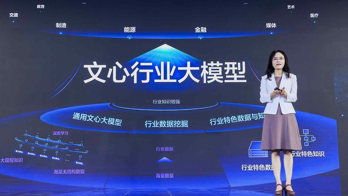 文心·行业大模型的核心特色是“行业知识增强”,基于通用数据训练的文心大模型,加上挖掘行业应用场景中,大量存在的行业特色大数据和知识,进一步提升大模型对行业应用的适配性。在能源、金融领域,百度与国家电网、浦发银行联合研发了行业大模型。