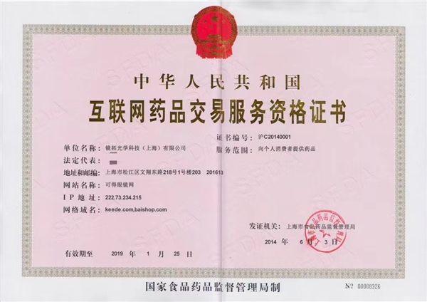 在多次发文征询后,在2014年6月3日试点颁发了第一张且唯一一张《互联网药品交易服务资格证(仅限三类医疗器械)》给镜拓光学科技(上海)有限公司