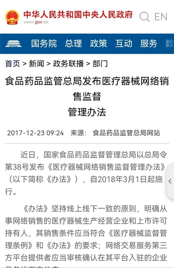 彼时国家修订了相关市场监督管理条例,对售卖医疗器械的企业进行更加的规范化管理。因此一些合法企业应运而生。