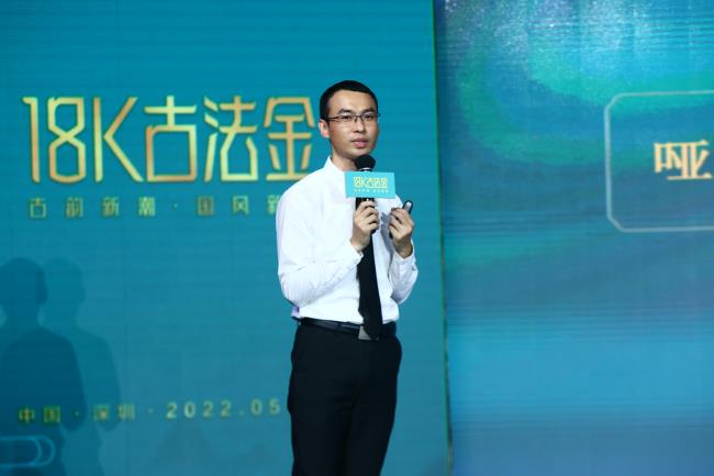 港福珠宝(深圳)有限公司项目负责人陈章弟先生对18K古法金创新品类作了全面的讲解。在国潮崛起、古法金饰势头强劲的大环境下,古法市场迎来蓝海商机。凭借这股东风,扎根于民族文化,融入千年非遗古法工艺在18K黄金黄创新品类基础上,创新升级的18K古法金品类隆重上市,以璀璨之姿填补古法K金的市场空白。18K古法金通过“精工艺·高硬度·新国潮·显精致”四大核心优势实现文化品类升级,用古朴雅致与现代时尚并存的国风形象迅速俘获以Z世代为主消费群体的芳心。这不仅仅是顺应时代潮流趋势,更是市场的变革与创新。