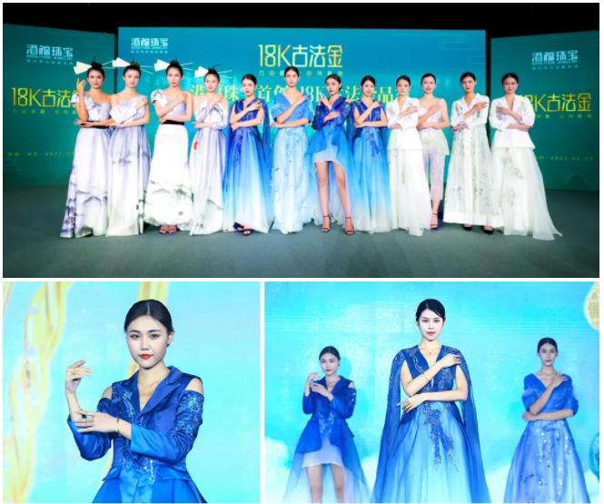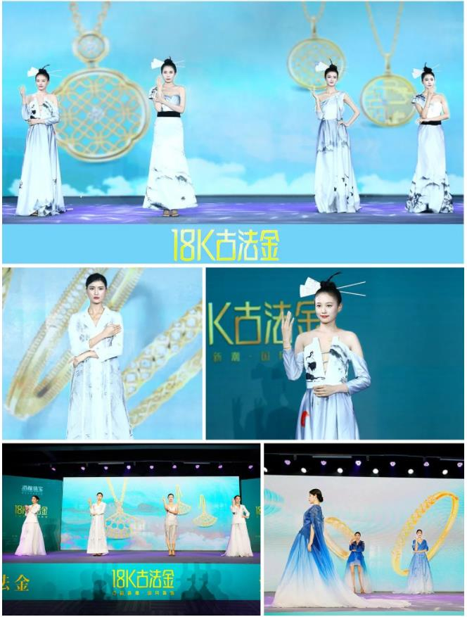 18K古法金首秀成为此次发布会的一大亮点。港福通过一场美轮美奂的新品大秀将现场嘉宾带入一场东方神韵与时尚新潮交汇的奇幻世界中,令人耳目一新。璀璨流转,芳华毕现。匠心传承非遗古法,K金演绎国潮新风,以轻奢、时尚展现跨越千年的“东方印象”之美,传递中华美学文化与价值。