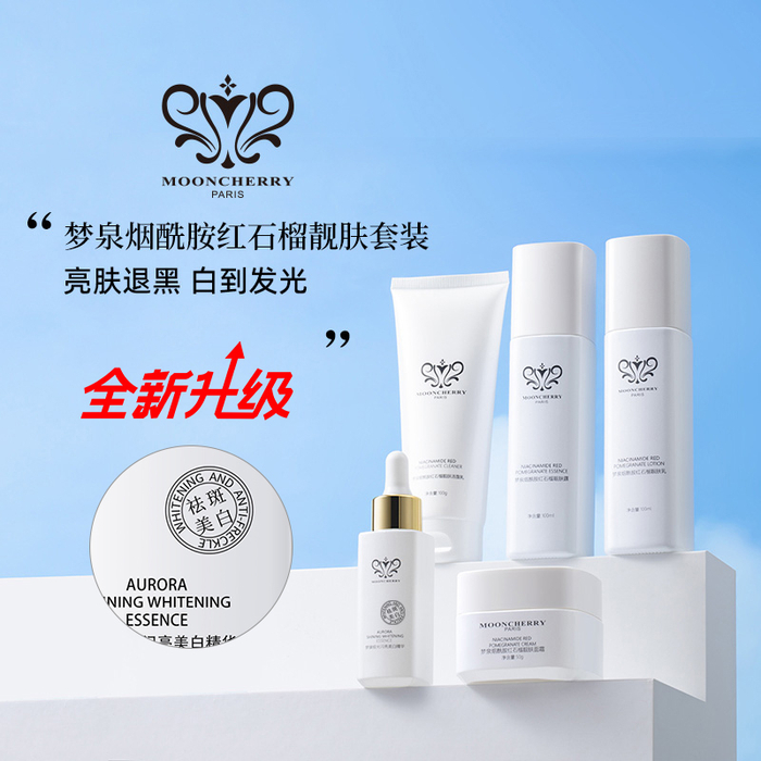 烟酰胺是维生素B3的一种衍生物,也是美容皮肤科学领域公认的皮肤抗老化成分,主要功效是减轻皮肤在衰老过程中产生的肤色黯淡、发黄、长斑;红石榴中含有大量的石榴多酚和花青素,抗氧化性能好,能有效中和自由基,击退AGEs,达到护肤效果;熊果苷能够通过抑制体内酪氨酸酶的活性,阻止黑色素的生成,从而减少皮肤色素沉积。