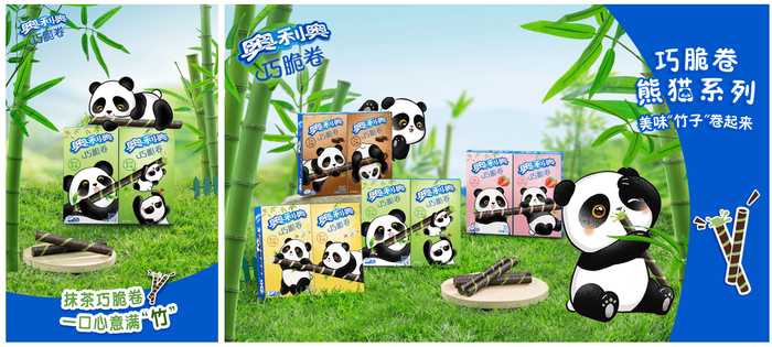 以品牌核心产品为切入点,奥利奥点燃无穷创意,结合熊猫最爱的竹子与奥利奥巧脆卷系列的特有形状,推出抹茶巧脆卷的焕新包装,激发消费者味觉与视觉双重萌态惊喜,萌力值与玩心联动,赋予产品本身强大的社交货币属性。除了蕴含巧思的抹茶口味,巧脆卷全品类中的巧克力味、草莓味与香草口味也都焕然一新。