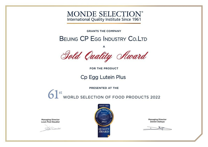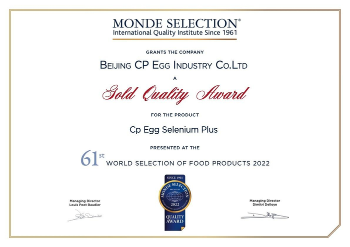 正大集团“睛彩&硒旺”系列鲜鸡蛋荣获国际品质 “蒙特奖”金奖