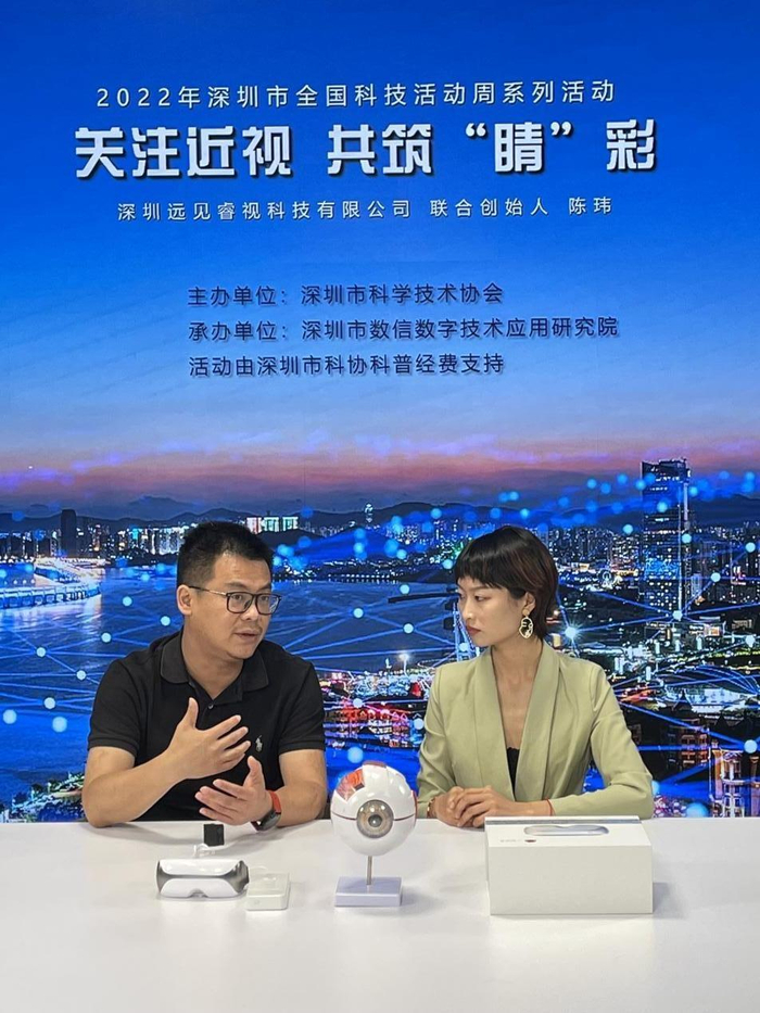 5月23日下午,深圳市“全国科技活动周”网络直播科普活动以“关注近视,共筑‘睛’彩”为主题进行了科普直播,在抖音、微博、哔哩哔哩等多个平台线上同步开启。深圳远见睿视科技有限公司联合创始人陈玮先生作为嘉宾给来给大众科普科学用眼知识,讲述青少年近视及近视防控知识。