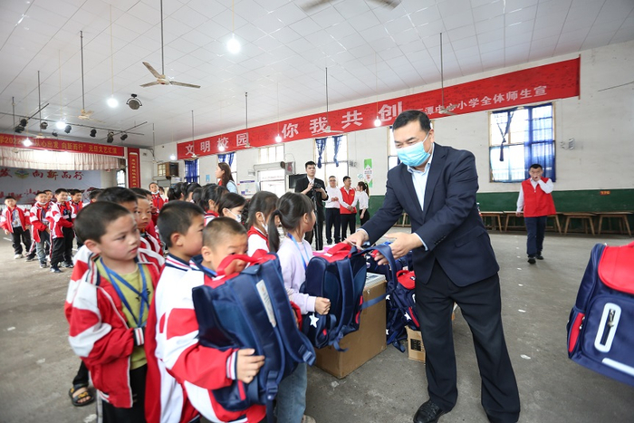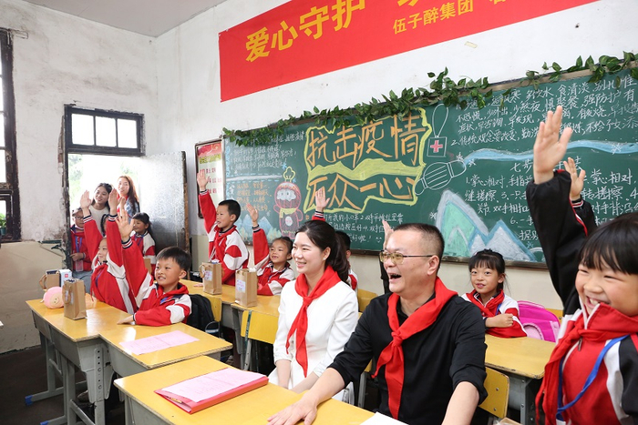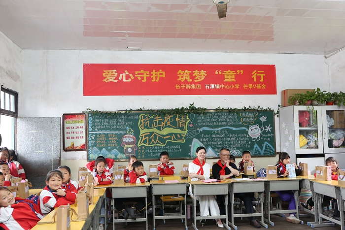 据了解,“儿童之家”是“芒果V基金”响应国家号召,以“乡村振兴”和“儿童关爱”为主题开展的公益项目。石潭镇中心小学的“儿童之家”由湖南伍子醉实业集团有限公司捐赠,在本次六一公益活动,伍子醉集团也向石潭镇中心小学的45名贫困生及学校捐赠了一批爱心助学物资。