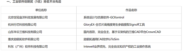 工业软件创新应用大赛总决赛工业软件创新奖及工业软件优秀产品奖名单
