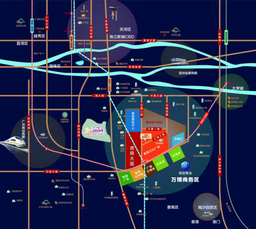 作为番禺的招商载体与商务核心,万博商务区充分发挥其粤港澳大湾区核心区、广深创新走廊必经战略之地等区位优势,紧抓国内外商业资源,抢占发展先机。如今万博商务区的九大项目正式亮相 ﻪ,万达广场 ﻪ、华新汇、奥园国际中心、四海城、粤海广场、德舜大厦、敏捷广场、广晟万博城、佳创盛汇地下空间都汇聚于此。未来,这里将会被打造成粤港澳大湾区文商旅融合发展典范区。