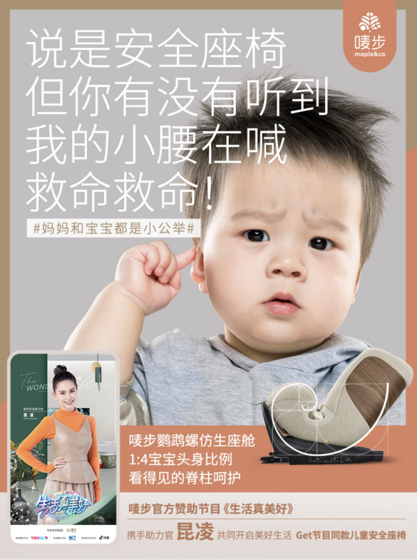唛步作为 《生活真美好》 节目特别赞助,与全能星妈、美好生活助力官--昆凌展现的那种美好生活令人向往。节目同款的唛步儿童安全座椅确实令人印象深刻:鹦鹉螺仿生座舱 ,符合人体工学设计,有利于宝宝脊椎健康发育;外侧防撞,内侧减震,360°旋转好操作……