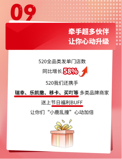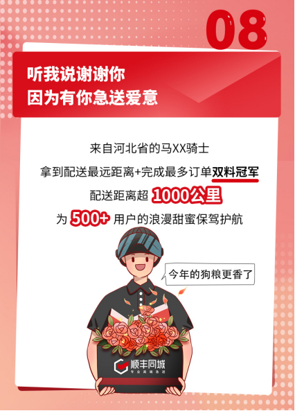 作为各行业头部商家的合作伙伴,顺丰同城2021年top100客户续签率高达86%,全方位覆盖不同消费场景。而在520当天,顺丰同城还和瑞幸、乐凯撒、移卡、买吖等品牌展开节日配送,发起各种优惠,希望能给消费者带来更多美好体验。