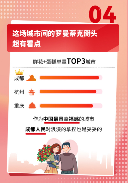 据顺丰同城统计,其鲜花和蛋糕配送单量TOP3城市分别为成都、杭州、重庆,以一线、新一线城市为主。