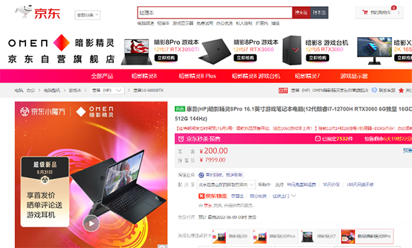 热爱游戏的玩家可以在京东直接入手惠普暗影精灵8 Pro,拥有12代酷睿+RTX30系显卡,可充分应对光追游戏和重度应用,大型3A游戏在高画质下都可以流畅运行,京东5月31日晚8点首发到手价7999元;拯救者刃7000K 2022最高可选全新12代酷睿i7处理器,配合稳定低纹波电压,240W强劲动力,让CPU性能肆意奔腾,各类配置要求严苛的游戏都能畅玩,京东预售到手价7699元。