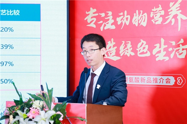 黑龙江金象生化有限责任公司副总经理、黑龙江玉米行业协会副秘书长侯国利在致辞中指出,象屿生化坚持以客户为中心的发展思想,经过近三年的努力,今天正式发布环保型缬氨酸产品,充分体现融合低碳环保理念,给饲料和养殖行业带来更安全、更经济的产品,可以有力帮助客户提升品质,降低成本,降低整个产业链的碳排放。