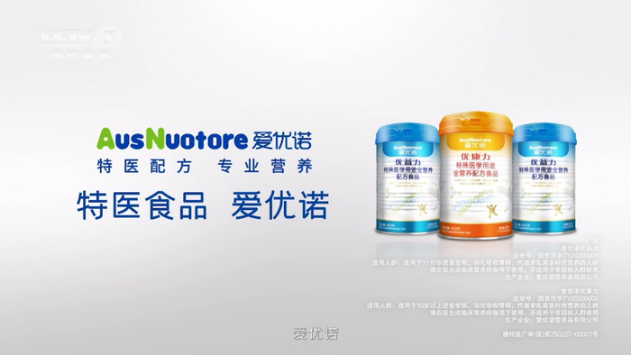 近日,爱优诺优益力和优康力特殊医学用途配方食品广告强势登陆CCTV1、CCTV7频道,携手国家级媒体中央电视台,品牌实力再次受到肯定。搭乘“国家品牌”高空媒体,爱优诺将在更高维度上释放更大的品牌价值。