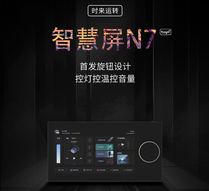 本次发布的主机中,既有10寸大屏,也有4寸小屏,还有8寸常规款。每款主机都采用超高清分辨率,科技感十足的同时显示效果也更加惊艳,方寸之间,别有天地。向往此次还突破常规,在智慧屏N7中加入旋钮设计,可以控制调光灯、空调、地暖、窗帘、设备音量等,操纵更丝滑。