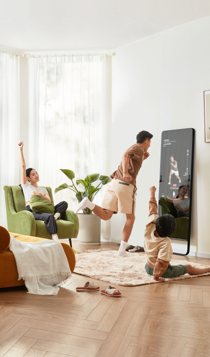 除关注儿童视力保护外,小度也在积极探索家庭场景下更细分的健康领域。 2021年年底,小度推出了助力全家运动健康的小度添添智能健身镜。该产品汇集AI私教健身课程、体感健身游戏、AI动作纠错、语音手势操控、家庭娱乐中心在内的多项功能,满足全家老少不同的健身需求,提供在家健康运动、健康生活新方式。