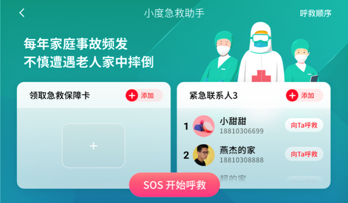 小度也关注着“空巢群体”的生活需求,在智能屏产品端上线急救助手功能。用户遇突发紧急状况,只需通过呼叫“小度小度,救救我”即可进入免费急救通道,提供呼叫紧急联系人、24小时线上专人急救指导、呼叫救护车等服务。 该功能上线仅半年,已累计接到紧急救助电话9万余次,密集期日均接线数量超1000次。