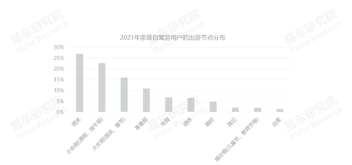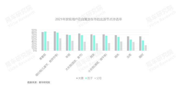 2021年家庭自驾游集中周末与小长假,寒暑假渗透率高,满足孩子需求是车企角逐家庭自驾游车市的关键切入点