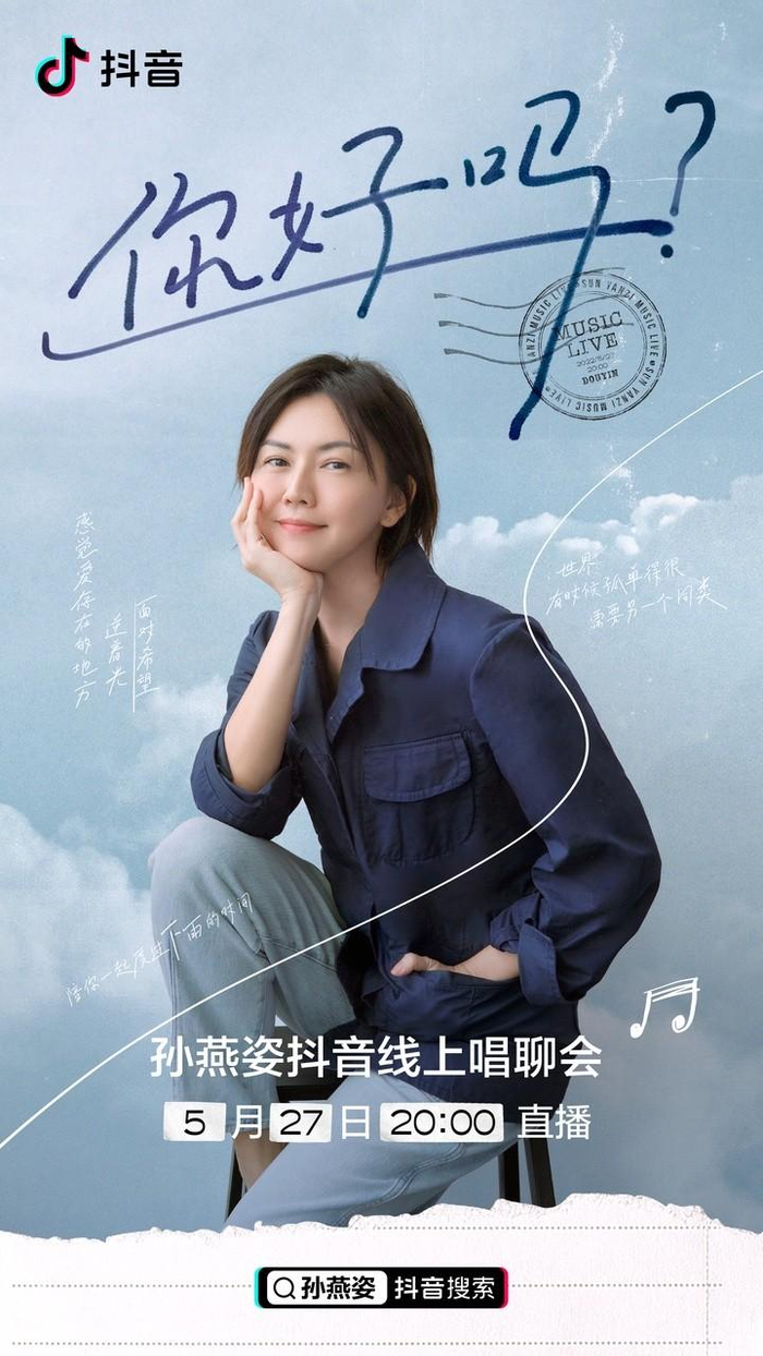 你好吗? 孙燕姿抖音线上唱聊会5月27日晚8点与你小唱小聊小聚会