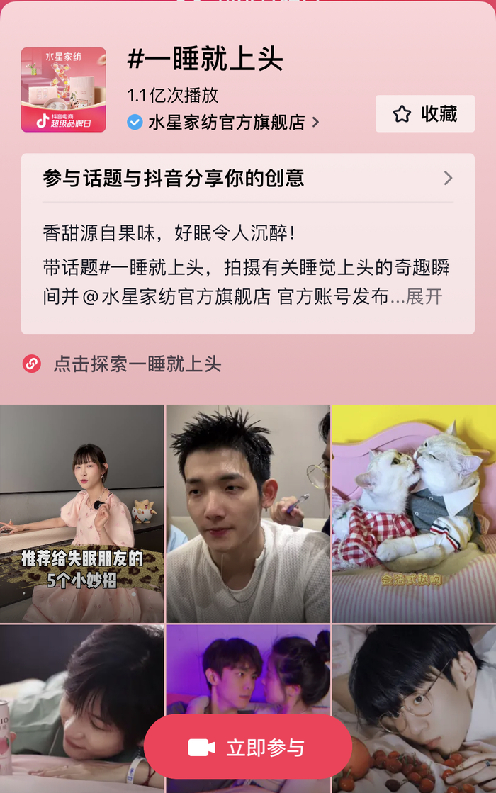 “一睡就上头”话题登上抖音热搜榜TOP6,目前热点话题在站内曝光已破1亿。平台以兴趣内容吸引为品牌导入更多的用户流量,助力品牌触达更多年轻圈层和潜在用户,并提前为爆品爆发拉动流量。