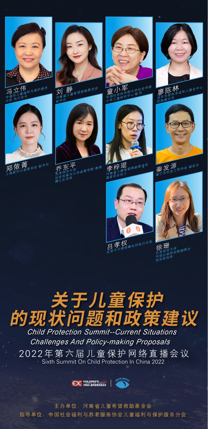在中国社会福利与养老服务协会儿童福利与保护服务分会的指导下,河南省儿童希望救助基金会(以下简称儿童希望)于5月25日成功举办了第六届儿童保护线上高峰会议。本次峰会聚焦“儿童保护的现状、问题和政策建议”,与各界专家、学者、一线社工等就儿童发展相关政策的发布、实施以来,共同探讨了儿童保护救助机构、福利院转型、儿童保护工作的挑战等议题,并提出了政策倡导建议。