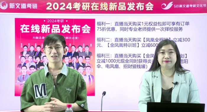 针对需求日异高涨的考研市场,为了满足诸多学员的备考诉求,新文道考研在直播当天推出一揽子福利,其中包括: