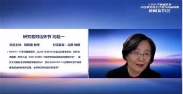 鲁智豪教授首先向沈琳教授提问:“从2021年ESMO大会口头报告发布,到作为中国唯一研究入选‘2021 ESMO 11项改变临床实践的突破性研究’,现在又刊发在全球顶级医学期刊BMJ,您认为ORIENT-15这项研究对于食管癌免疫治疗的临床实践,会带来怎样的启示和变革?”