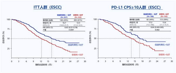 在全人群中,PD1/PD-1抑制剂信迪利单抗联合化疗组整体客观缓解率(ORR)达66%,相较于化疗组ORR 45%,提高了21%;中位缓解持续时间(DoR)长达9.7个月,与化疗组相比延长了2.8个月。