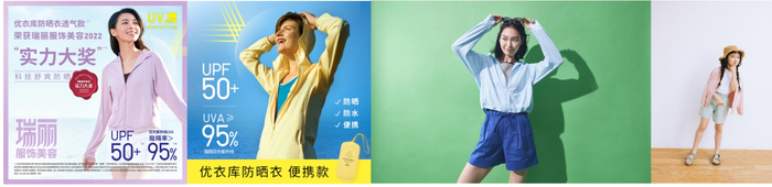 全新升级UPF50+瞬间防晒,日光紫外线UVA阻隔率>95%,兼具凉感透气或防水便携功能。AIRism透气款,荣获瑞丽服饰美容2022“实力大奖”与SGS双重权威专业认证!除透气款与便携款,本季新推出时尚短款 防晒·亲肤·时尚,更多新印花·新版型!防晒小物系列 包括防紫外线袖套、防紫外线帽子等,多方位守护肌肤健康!