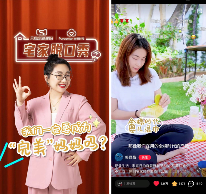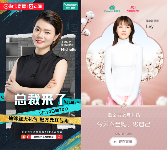 与此同时,全棉时代天猫超级品牌日特别策划一日一店播专家成团解读全棉安心养娃,并结合淘宝直播双IP加持,邀请傅首尔作为#今夜大明星#空降品牌直播间分享养娃攻略,共同为新手妈妈人群提供专业指导;更有全棉时代营销副总裁Michelle加入淘宝直播x点淘#总裁来了#,为用户带来直播间惊喜福利。两大主题直播店播观看量突破30万。